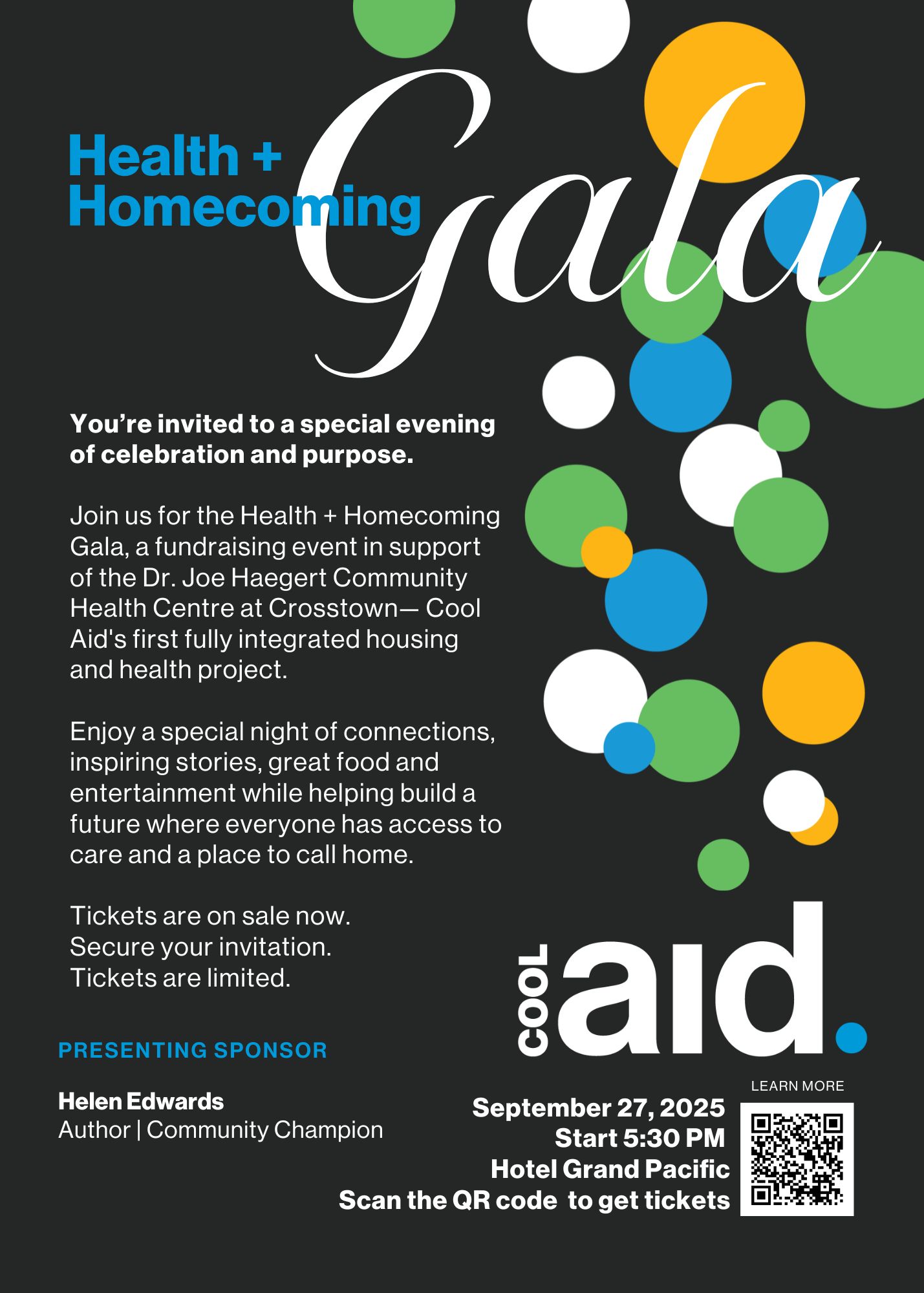 The Health + Homecoming Gala is a special evening to raise critical funds for the Dr. Joe Haegert Community Health Centre at Crosstown. Guests will enjoy a fantastic dinner, live music, powerful storytelling, and the chance to be part of something transformative for Victoria.