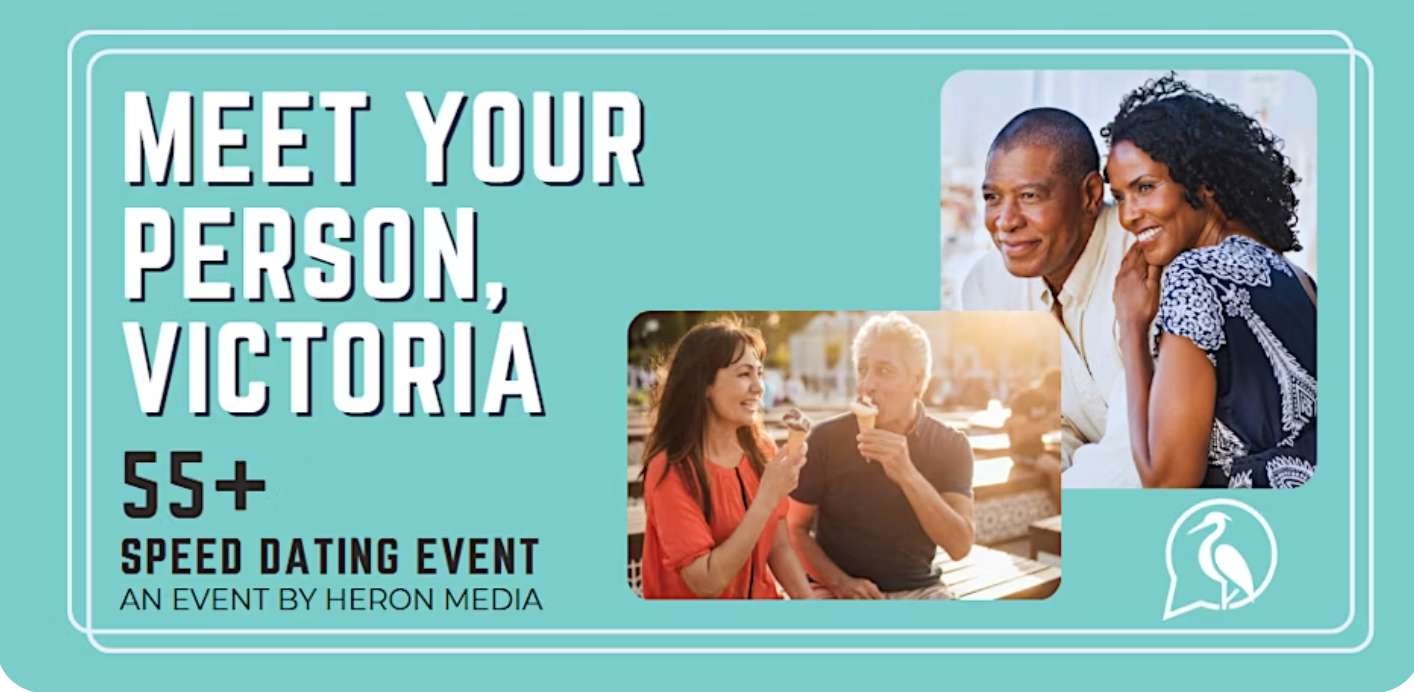 Victoria’s newest 55+ speed dating event! Are you looking for love? Or even friends? Meet your person! This event caters to the 55+ need for community and love. A portion of ticket proceeds will go directly to BC Children’s Hospital Foundation. So, if you are looking for a fun night out for a good cause – for yourself too! Sign up using the link!