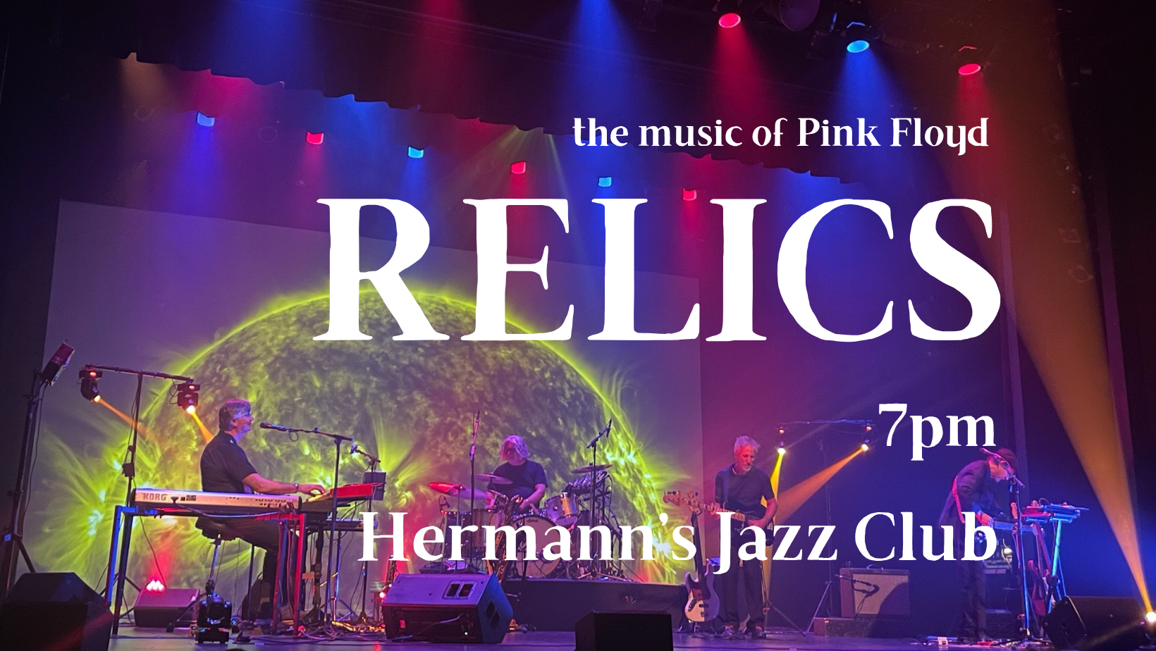 $25RELICS: an early Pink Floyd experience pay homage to the early days of Pink Floyd, focusing primarily on the 1967-1975 period of the band’s illustrious career. Songs like “Astronomy Domine”, “Lucifer Sam”, “Fearless”, “Wish You Were Here” and “Echoes” from albums such as A Saucerful of Secrets, Umma Gumma, The Piper at the Gates of Dawn, and Meddle.