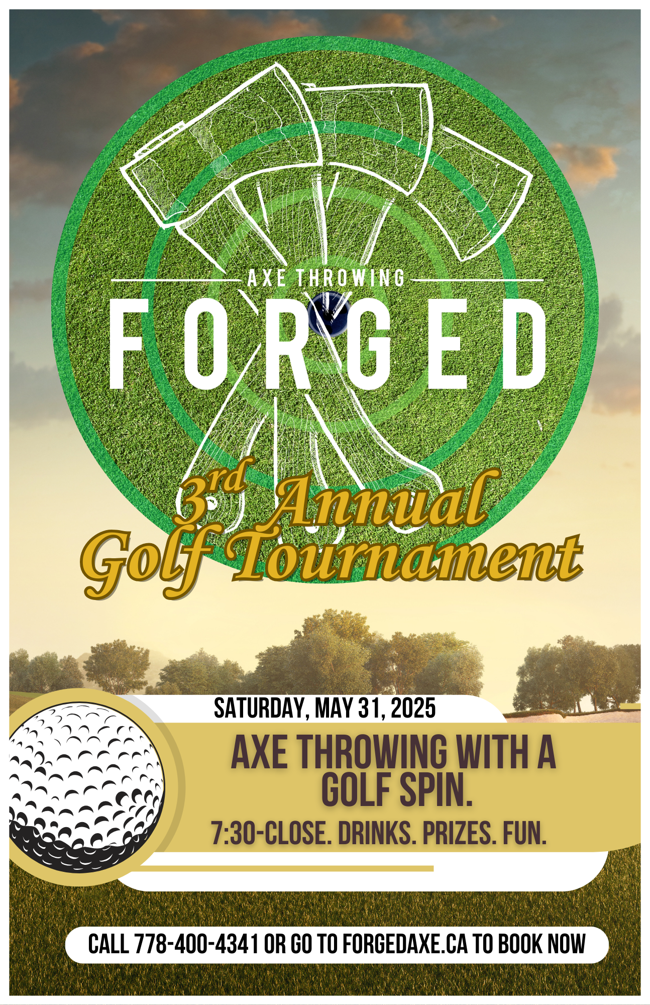 Axe Throwing with a Golf Spin. Can you throw a birdie? Come in and enjoy a unique night of fun and games. Drinks and Food available. Prizes to be won!