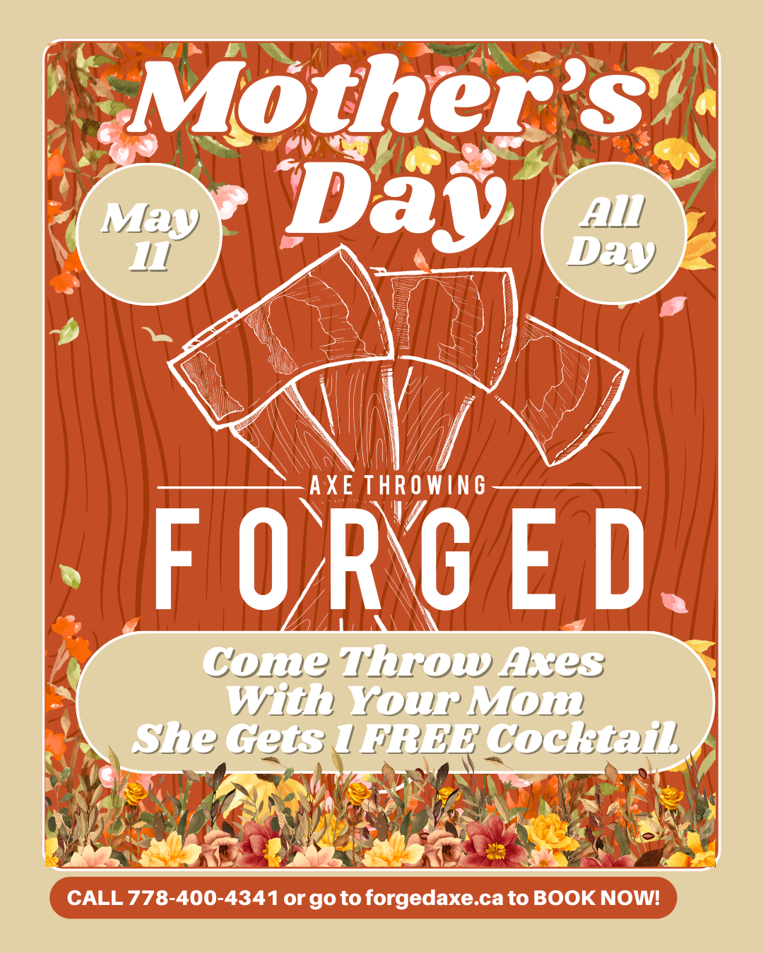 Mom’s love throwing axes. So bring em to Forged and they also get a free cocktail. We love Moms.